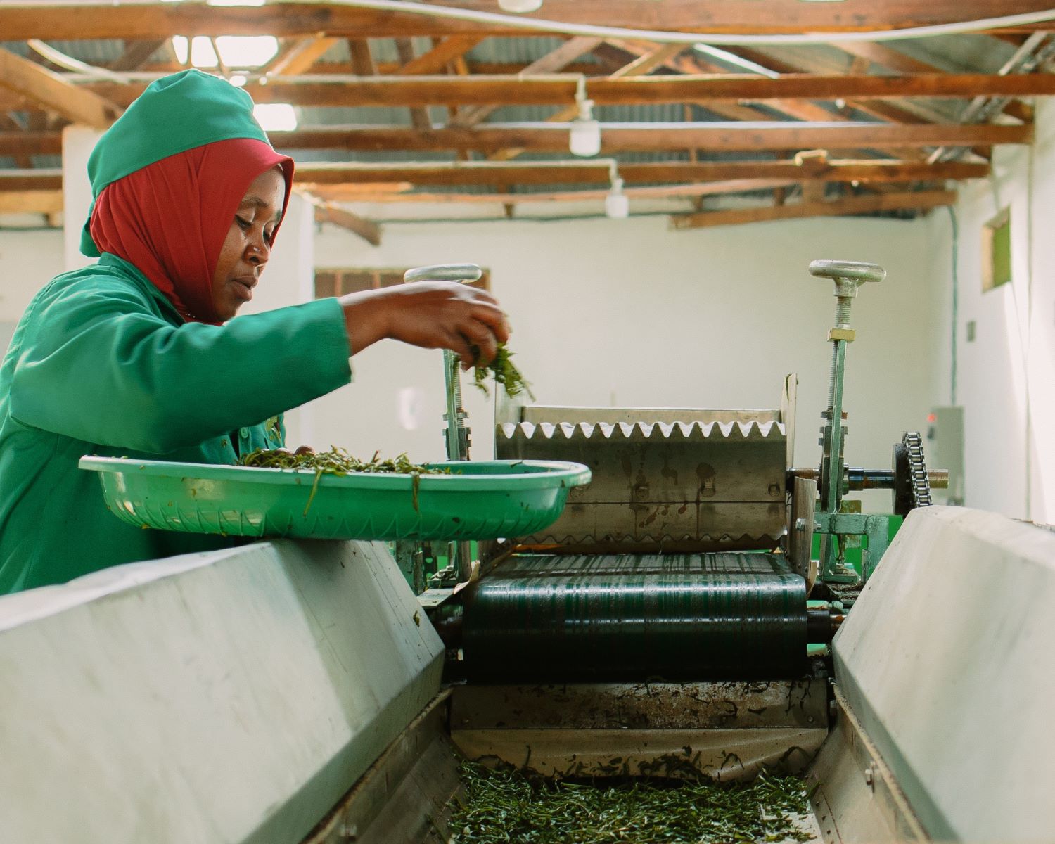 2023 eröffneten wir die Sakare Specialty Tea Factory – die erste Teeverarbeitungsanlage Tansanias, die im Besitz einer Kleinbäuer*innenkooperative ist. Vor der Fabrikgründung verdienten die Kleinbäuer*innen 0,15 $ pro kg mit dem Verkauf von unverarbeiteten Teeblättern. Heute verdienen sie 0,20 $ pro kg für unverarbeitete Teeblätter und erzielen mindestens 500% mehr Umsatz durch den Verkauf von verarbeitetem orthodoxem Tee an Kazi Yetu. Die Teeblätter und Gewürze werden in einem zweiten Schritt in unserer von Frauen geführten Fabrik in Dar es Salaam gemischt und verpackt. Wir setzen auf lokale Wertschöpfung, damit ein Großteil des Gewinns aus deiner Tasse Tee im Ursprungsland bleibt.